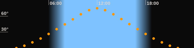 | Höchster Stand (Kulmination) | 12:00 Uhr (h = 74,6°) |