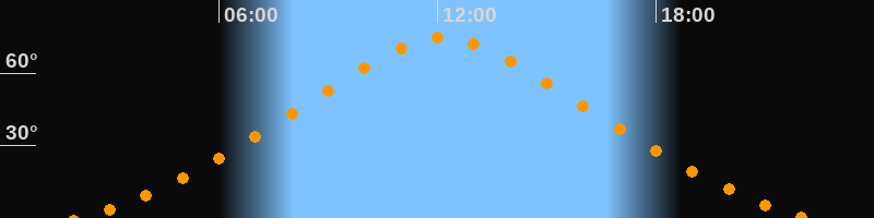 | Höchster Stand (Kulmination) | 12:10 Uhr (h = 74,6°) |