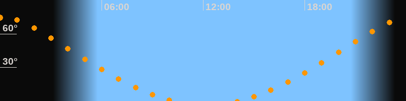 | Aufgang | 14:00 Uhr im Norden (αAz = 22,3°) |