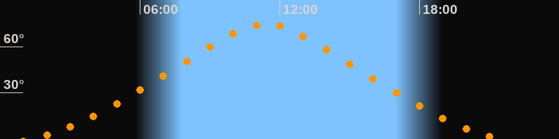 | Höchster Stand (Kulmination) | 11:24 Uhr (h = 74,6°) |