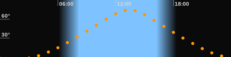 | Höchster Stand (Kulmination) | 13:24 Uhr (h = 74,6°) |