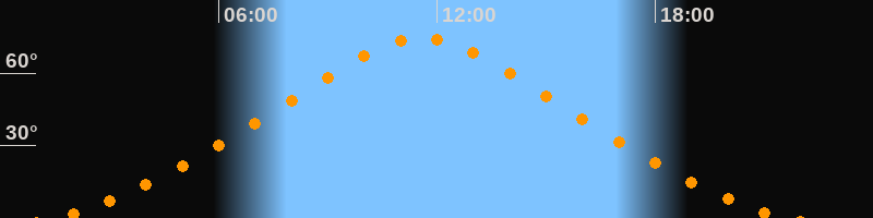 | Höchster Stand (Kulmination) | 11:34 Uhr (h = 74,6°) |