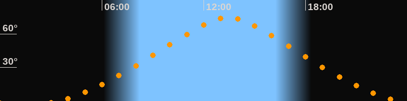 | Höchster Stand (Kulmination) | 13:25 Uhr (h = 74,6°) |