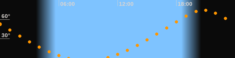 | Aufgang | 10:40 Uhr im Norden (αAz = 22,3°) |