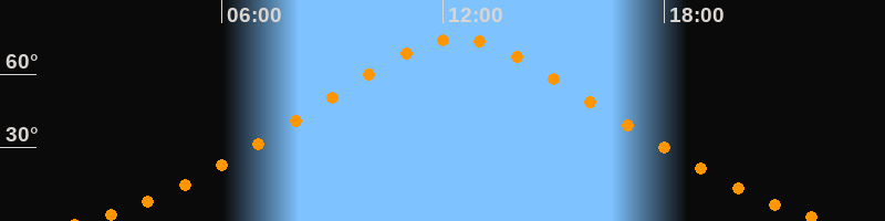 | Höchster Stand (Kulmination) | 12:24 Uhr (h = 74,6°) |
