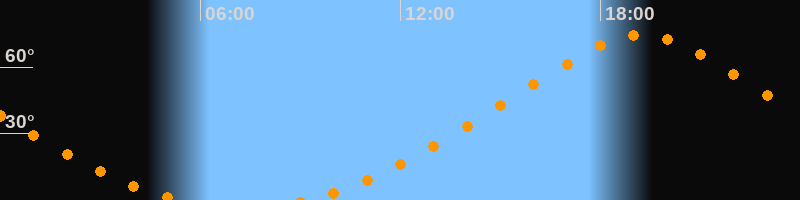 | Höchster Stand (Kulmination) | 19:14 Uhr (h = 74,6°) |