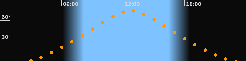 | Höchster Stand (Kulmination) | 12:45 Uhr (h = 74,6°) |