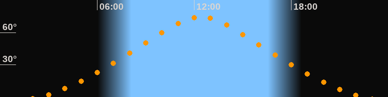 | Höchster Stand (Kulmination) | 12:25 Uhr (h = 74,6°) |