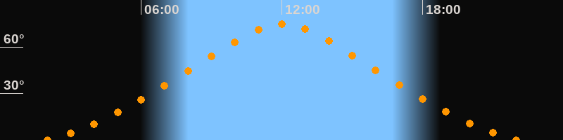 | Höchster Stand (Kulmination) | 12:01 Uhr (h = 74,6°) |
