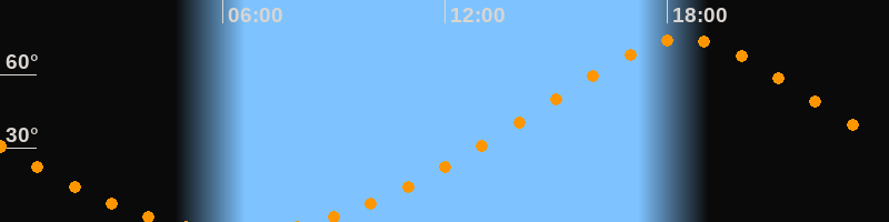 | Höchster Stand (Kulmination) | 18:28 Uhr (h = 74,6°) |