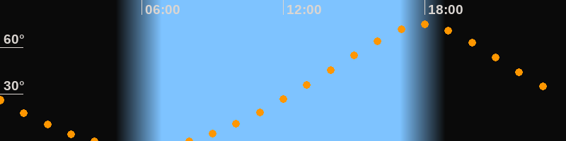 | Höchster Stand (Kulmination) | 17:56 Uhr (h = 74,6°) |