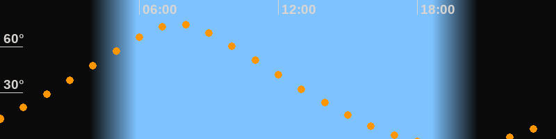 | Höchster Stand (Kulmination) | 07:40 Uhr (h = 74,6°) |