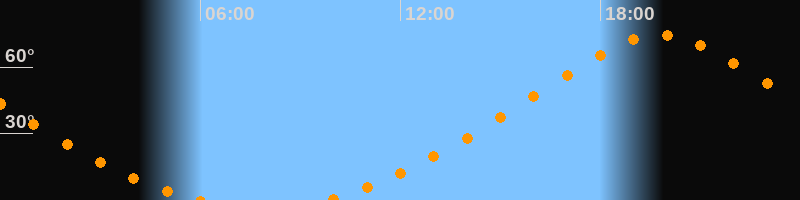 | Aufgang | 09:40 Uhr im Norden (αAz = 22,3°) |