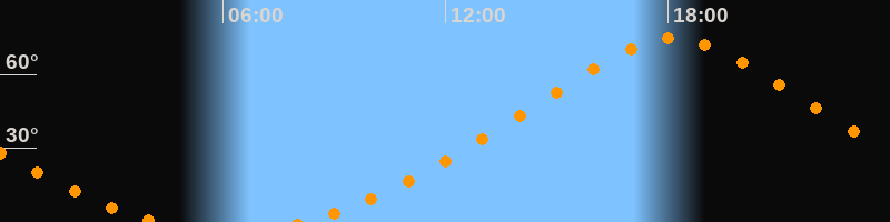 | Höchster Stand (Kulmination) | 18:10 Uhr (h = 74,6°) |