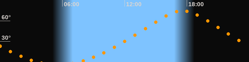 | Höchster Stand (Kulmination) | 17:34 Uhr (h = 74,6°) |