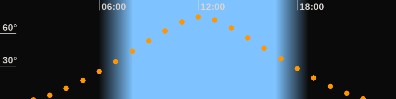 | Höchster Stand (Kulmination) | 12:08 Uhr (h = 74,6°) |