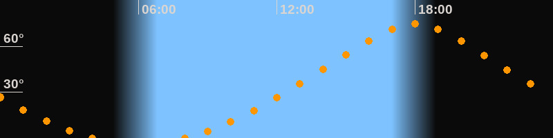 | Höchster Stand (Kulmination) | 17:59 Uhr (h = 74,6°) |