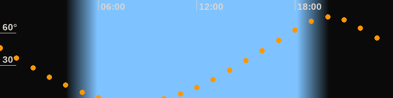 | Aufgang | 09:58 Uhr im Norden (αAz = 22,3°) |