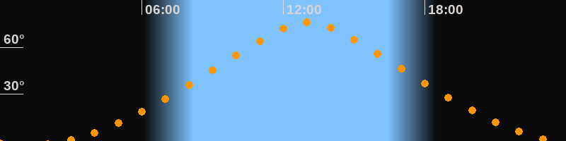 | Höchster Stand (Kulmination) | 13:02 Uhr (h = 76°) |