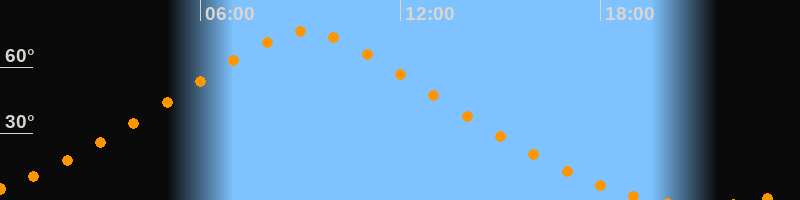 | Höchster Stand (Kulmination) | 09:09 Uhr (h = 76°) |