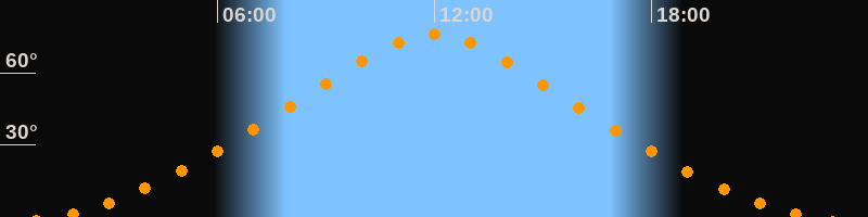 | Höchster Stand (Kulmination) | 11:58 Uhr (h = 76°) |