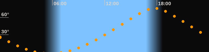 | Höchster Stand (Kulmination) | 17:45 Uhr (h = 76°) |