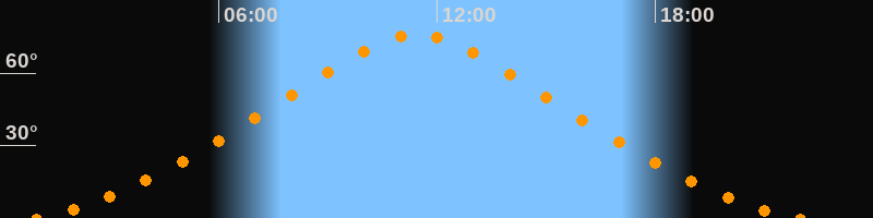 | Höchster Stand (Kulmination) | 11:28 Uhr (h = 76°) |