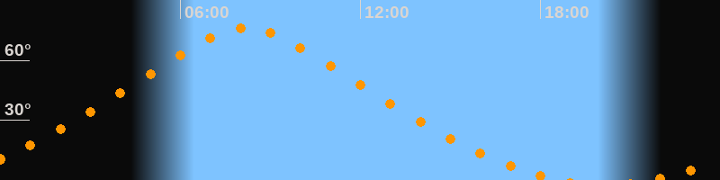 | Höchster Stand (Kulmination) | 08:12 Uhr (h = 76°) |