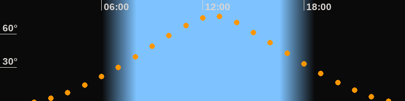 | Höchster Stand (Kulmination) | 12:40 Uhr (h = 76°) |