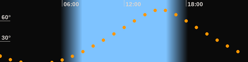 | Höchster Stand (Kulmination) | 15:30 Uhr (h = 76°) |