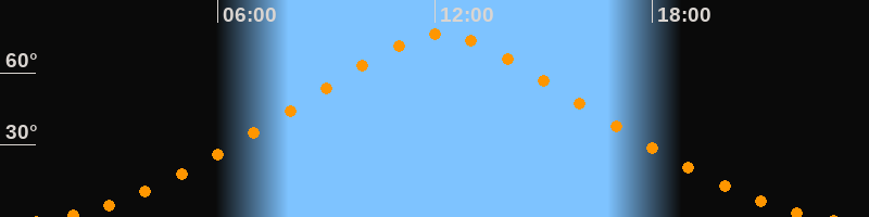 | Höchster Stand (Kulmination) | 12:09 Uhr (h = 76°) |