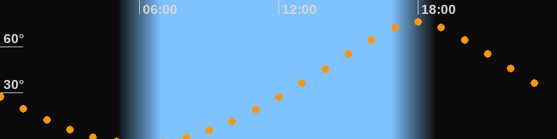 | Höchster Stand (Kulmination) | 18:00 Uhr (h = 76°) |