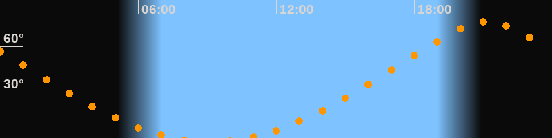| Aufgang | 10:34 Uhr im Norden (αAz = 16,8°) |
