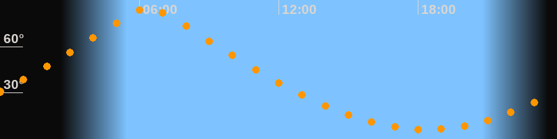| Höchster Stand (Kulmination) | 06:23 Uhr (h = 84,9°) |