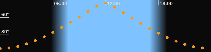 | Höchster Stand (Kulmination) | 11:54 Uhr (h = 84,9°) |