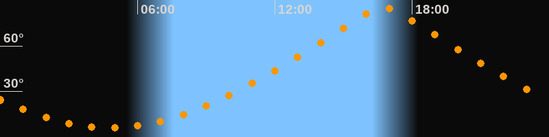 | Höchster Stand (Kulmination) | 16:46 Uhr (h = 84,9°) |