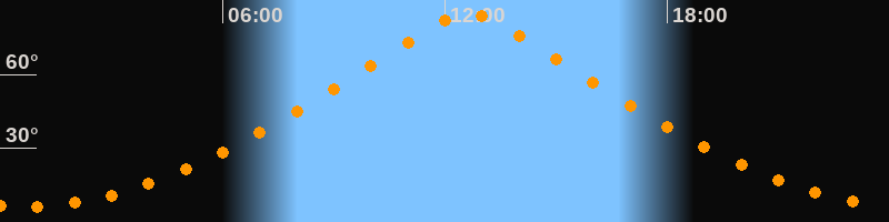 | Höchster Stand (Kulmination) | 12:38 Uhr (h = 84,9°) |