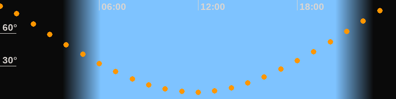 | Höchster Stand (Kulmination) | 23:48 Uhr (h = 84,9°) |