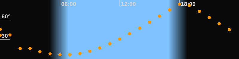 | Höchster Stand (Kulmination) | 18:22 Uhr (h = 84,9°) |