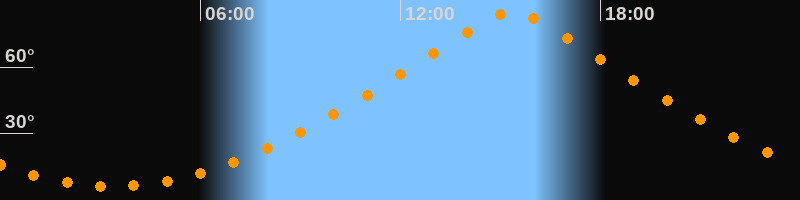 | Höchster Stand (Kulmination) | 15:21 Uhr (h = 84,9°) |