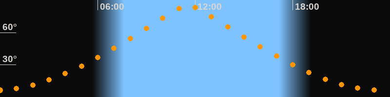 | Höchster Stand (Kulmination) | 11:34 Uhr (h = 84,9°) |