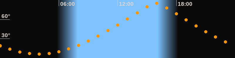 | Höchster Stand (Kulmination) | 15:55 Uhr (h = 84,9°) |