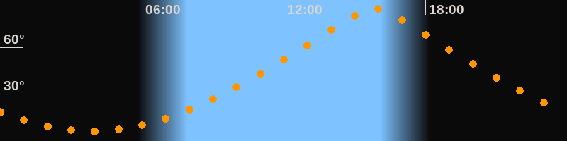 | Höchster Stand (Kulmination) | 15:51 Uhr (h = 84,9°) |