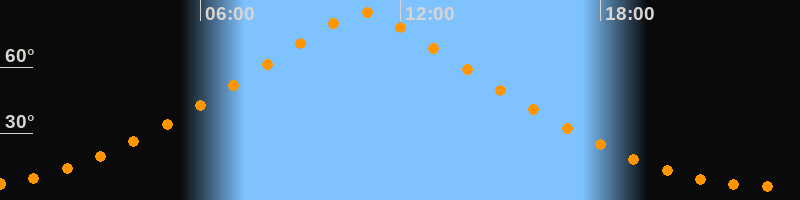 | Höchster Stand (Kulmination) | 10:53 Uhr (h = 84,9°) |