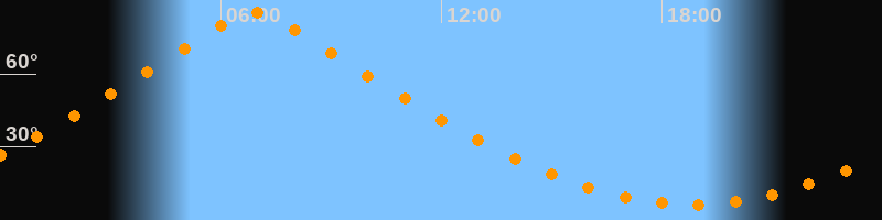 | Höchster Stand (Kulmination) | 06:54 Uhr (h = 84,9°) |