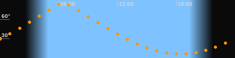 | Höchster Stand (Kulmination) | 06:27 Uhr (h = 84,9°) |