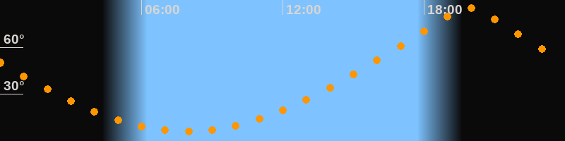 | Höchster Stand (Kulmination) | 19:54 Uhr (h = 84,9°) |