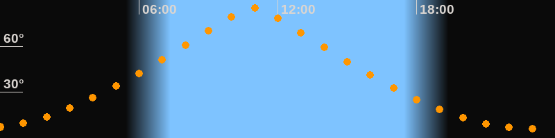 | Höchster Stand (Kulmination) | 10:55 Uhr (h = 84,9°) |