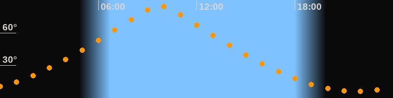 | Höchster Stand (Kulmination) | 09:45 Uhr (h = 84,9°) |
