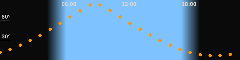 | Höchster Stand (Kulmination) | 09:30 Uhr (h = 84,9°) |